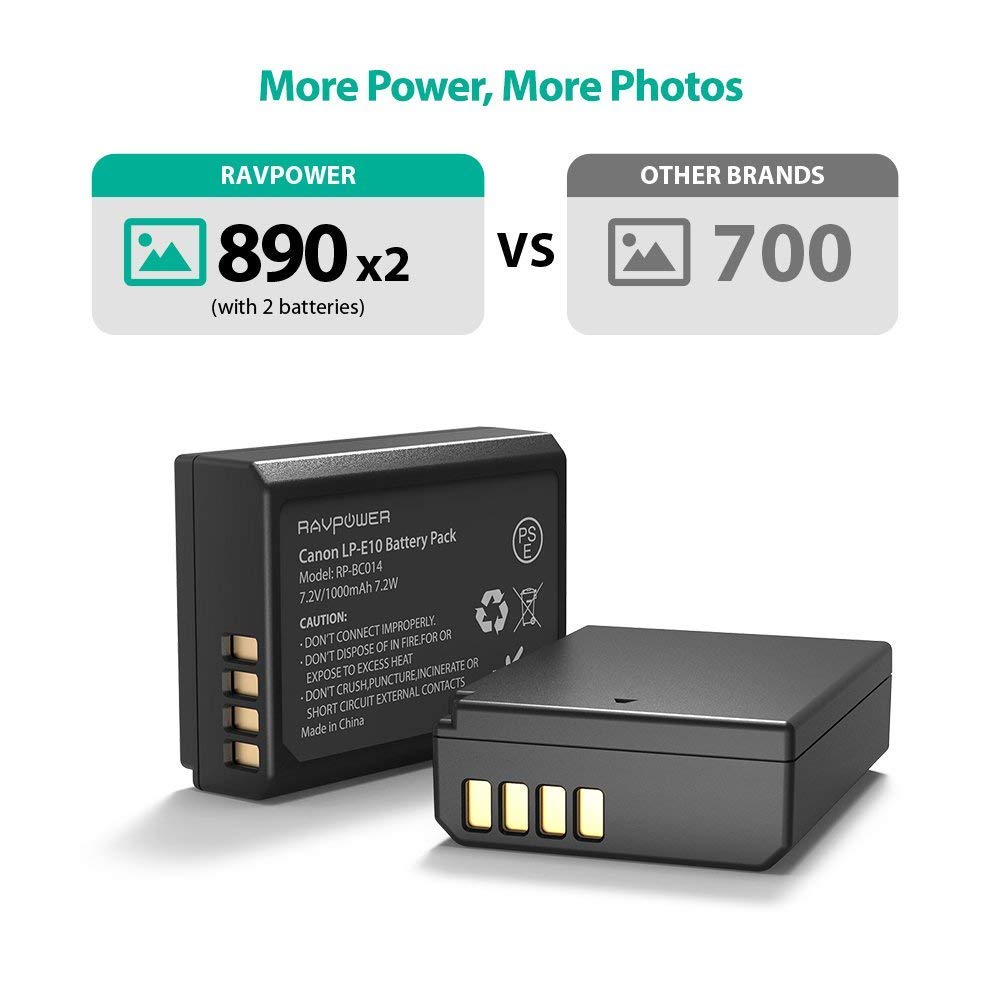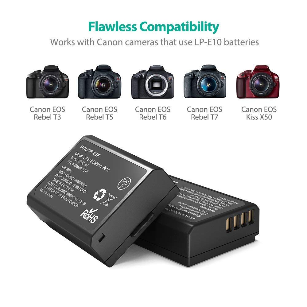 - Khả năng tương thích hoàn hảo: được thực hiện theo thông số kỹ thuật chính xác của pin Canon lp-e10, hoạt động với Canon EOS Rebel T3, T5, T6, T7, Kiss x50, Kiss x70, EOS 1100D, EOS 1200D, EOS 1300D và hơn thế nữa