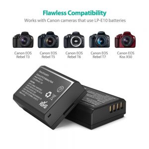 - Thêm năng lượng cho máy ảnh với 2 pin dự phòng cùng một bộ sạc pin kép để sạc cùng lúc 2 cục pin.
