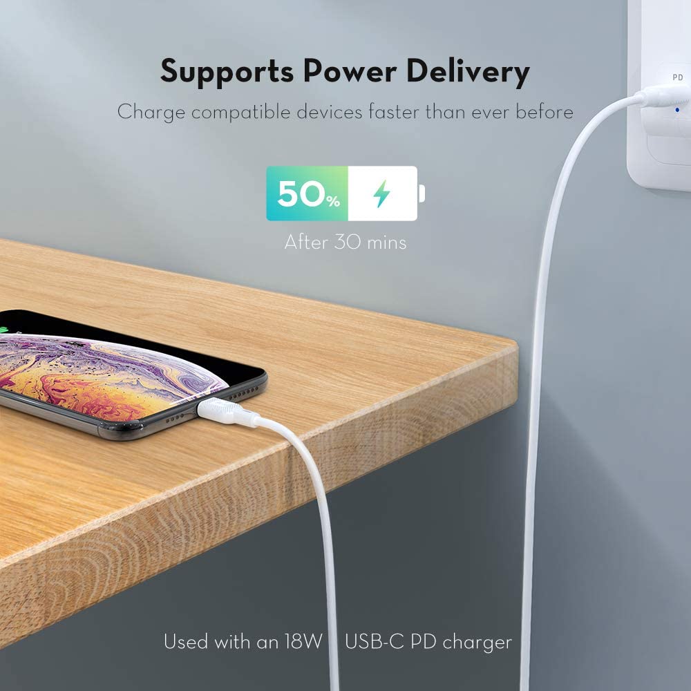 - Cung cấp năng lượng sạc nhanh: sử dụng cáp này với bộ sạc cung cấp điện USB-C 18W 29W, 30W, 61W hoặc 87W của Apple để sạc thiết bị iOS của bạn, thậm chí tận dụng lợi thế sạc nhanh trên iPhone 8, 8 Plus, x, XS, XR, XS Max, 11 Pro Max, 11 Pro, 11 trở lên- phục hồi 55% năng lượng chỉ trong 30 phút