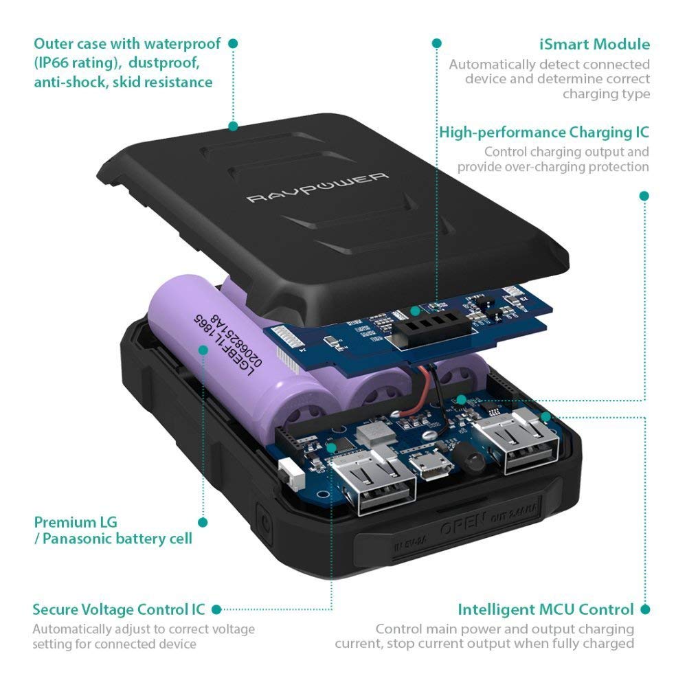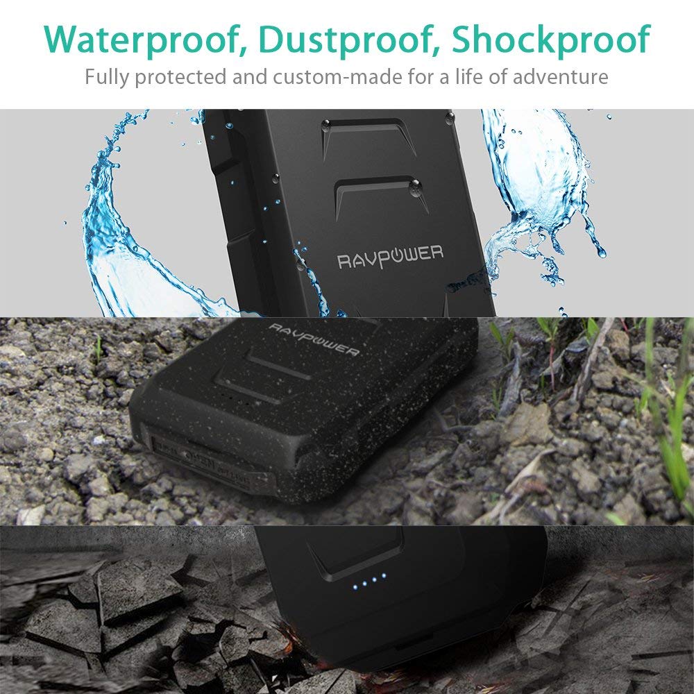 - Chống bụi, chống nước và chống va đập: Ngoài thiết kế nhỏ gọn thì khả năng kháng bụi, kháng nước đạt chuẩn IP66 và chống va đập tốt là ưu điểm lớn nhất của dòng sản phẩm pin dự phòng RP-PB044 hiệu RAVPower, Mỹ