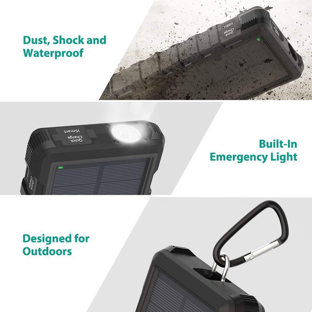 - Sạc dự phòng tích hợp panel năng lượng mặt trời dung lượng cực lớn lên tới 25.000mAh