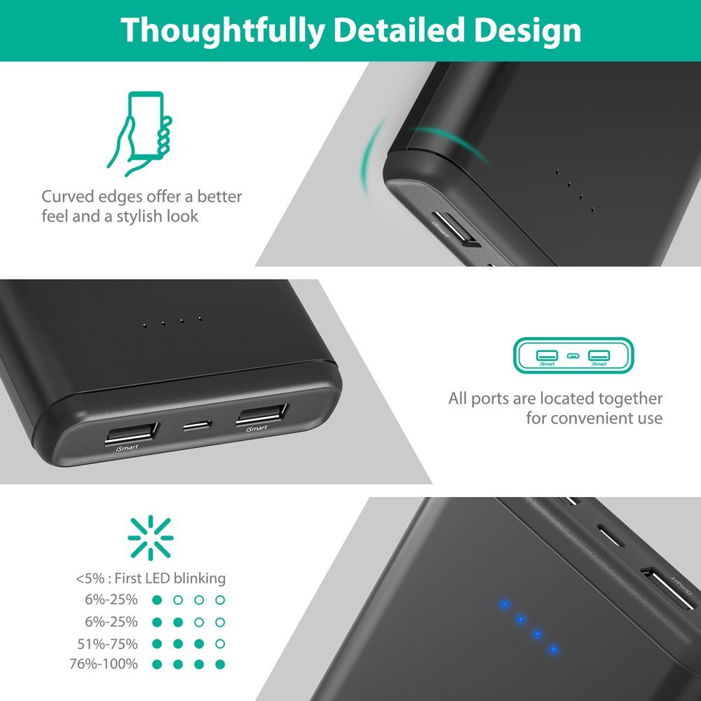 - Ngôn ngữ thiết kế mới: Được thiết kế bo tròn không chỉ ở các cạnh mà còn ở các góc của sản phẩm do vậy dù sở hữu dung lượng khủng lên đến 20000mAh nhưng RAVPower PB006 Power Bank không chỉ đẹp hơn, nhỏ hơn mà còn cho cảm giác cầm nắm tốt hơn.