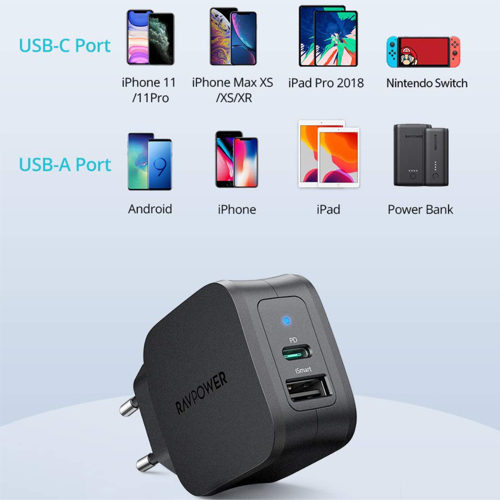 Sạc RAVPower RP-PC132 Type-C PD 18W chính hãng